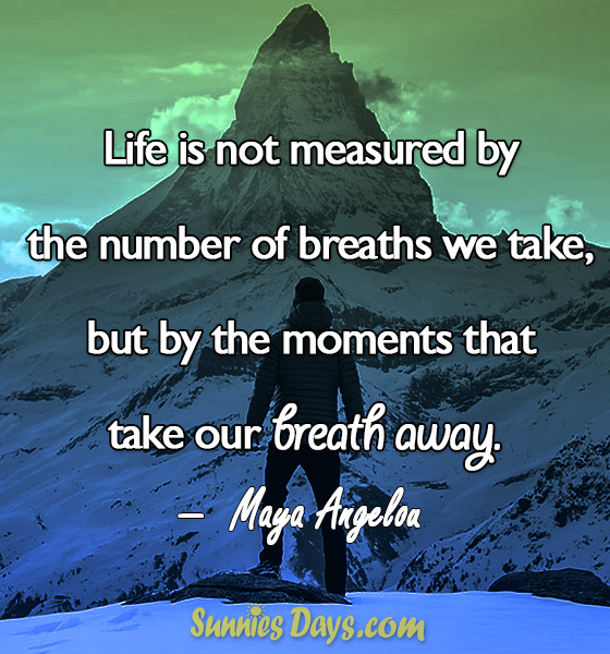 7.” Life is not measured by the number of breaths we take, but by the moments that take our breath away.” – Maya Angelou